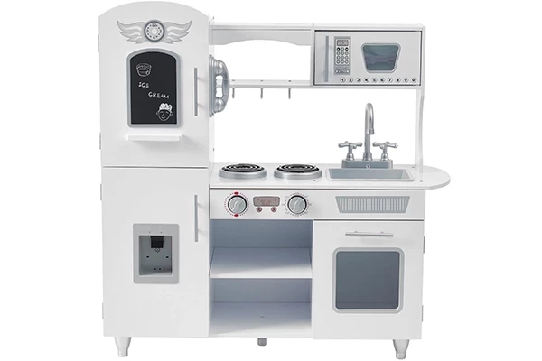 Naast houten keukentjes vind je bij ons ook kunststof uitvoeringen. Het ene is niet per se beter dan het andere, dit is vaak een persoonlijke smaak! Over het algemeen zijn de kunststof keukens iets feller van kleur. Daar tegenover zijn ze vaak wat gedetailleerder uitgevoerd. Wat heeft jouw voorkeur?